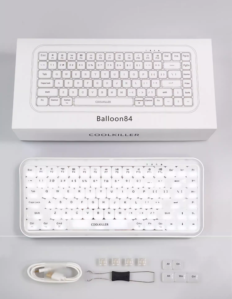 The CoolKiller Balloon84 keyboard is a groundbreaking product in the mechanical keyboard market, combining a transparent design with low-profile switches and versatile connectivity options to deliver a superior typing experience.