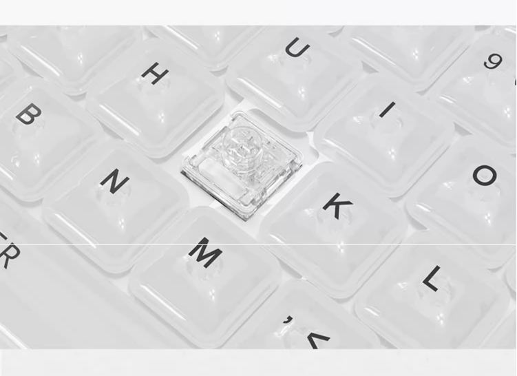 • Transparency: A fully transparent design with transparent components including the mechanical switches and keycaps, providing an unprecedented aesthetic.