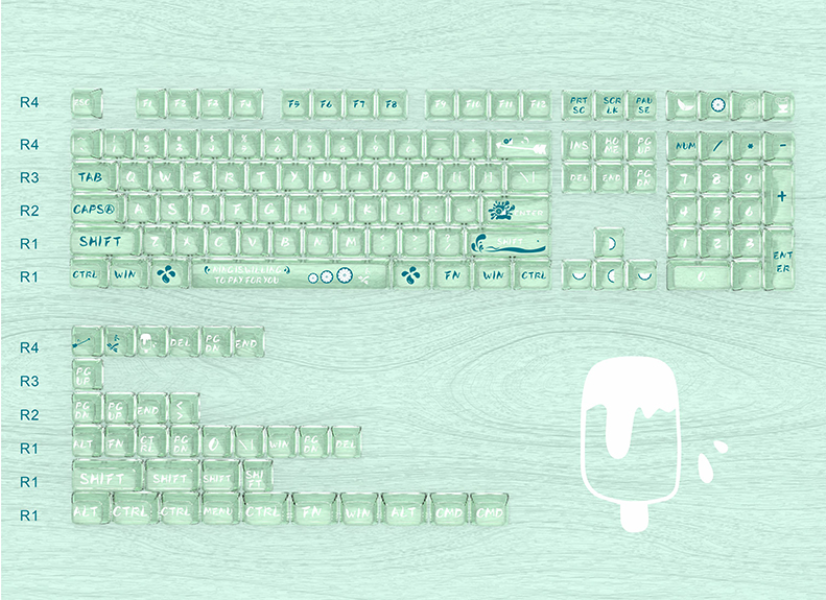 The combination of transparent PC material with the SA profile offers a visually striking and consistent typing experience, making the keyboard stand out while maintaining a comfortable key feel.
