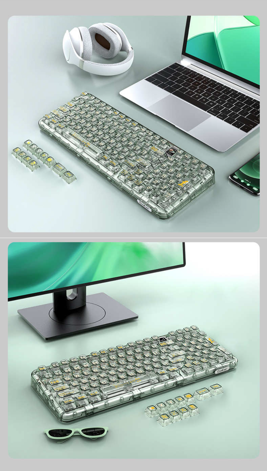 - Theme: Available in two color tones, "Polar Bear" with complete transparency and "Mathematician" with a subtle green tint on the keycaps.