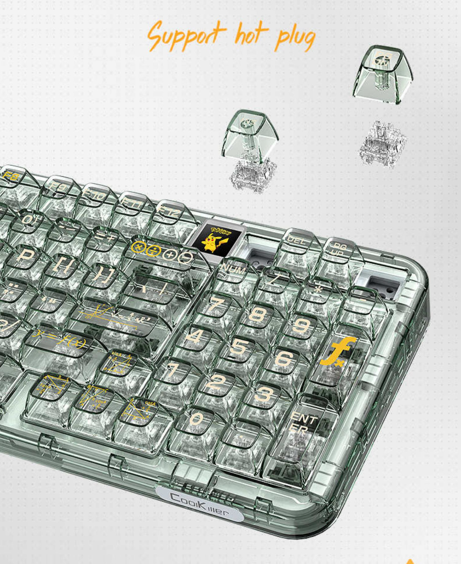 The Coolkiller CK98 is a transparent mechanical keyboard that brings together aesthetics, functionality, and performance, providing a unique typing experience with its custom-developed switches and extensive personalization options.