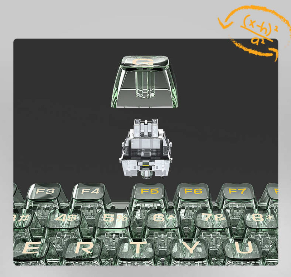 - Transparency: The entire keyboard, including the frame, switches, and keycaps, features a transparent design for a distinctive look.