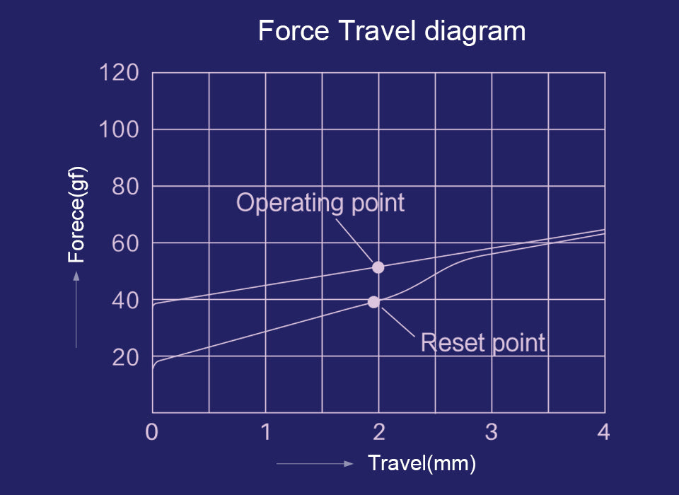 4. Pre-Travel: 2.0 ± 0.4mm - Pre-travel is the distance the keycap must be depressed before the switch actuates. The given range allows for some manufacturing variance, but the pre-travel distance ensures a clean and responsive start to each keystroke.